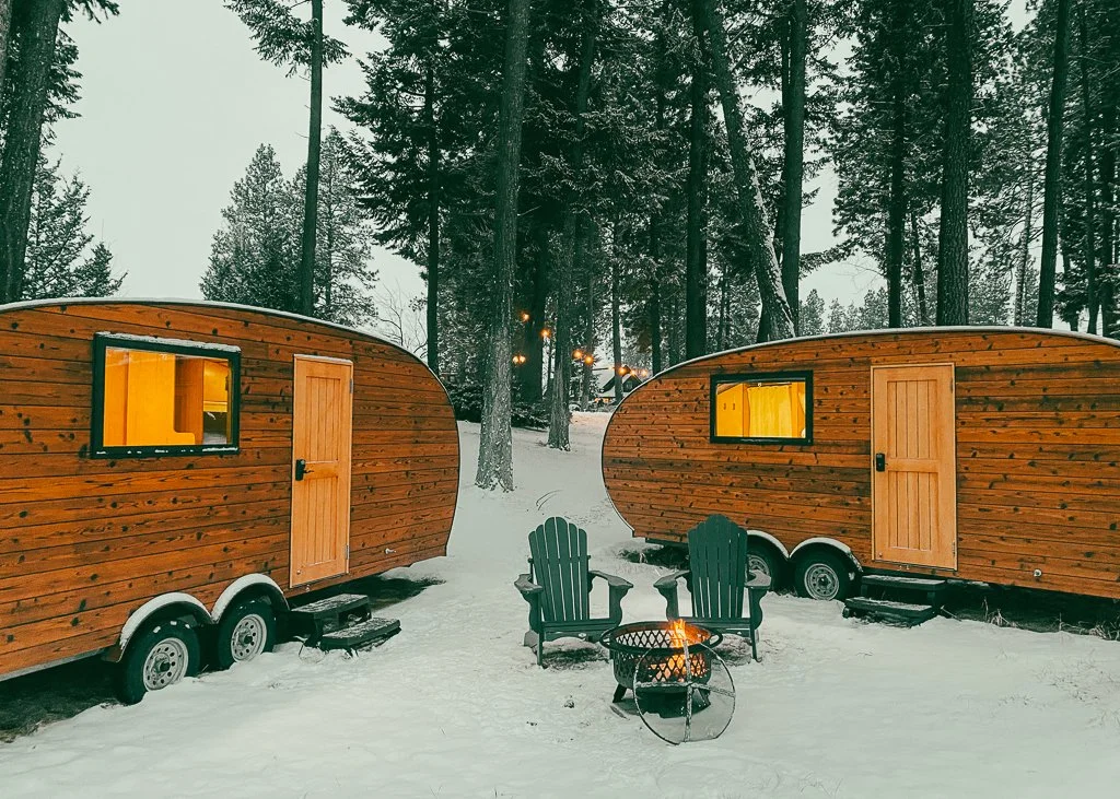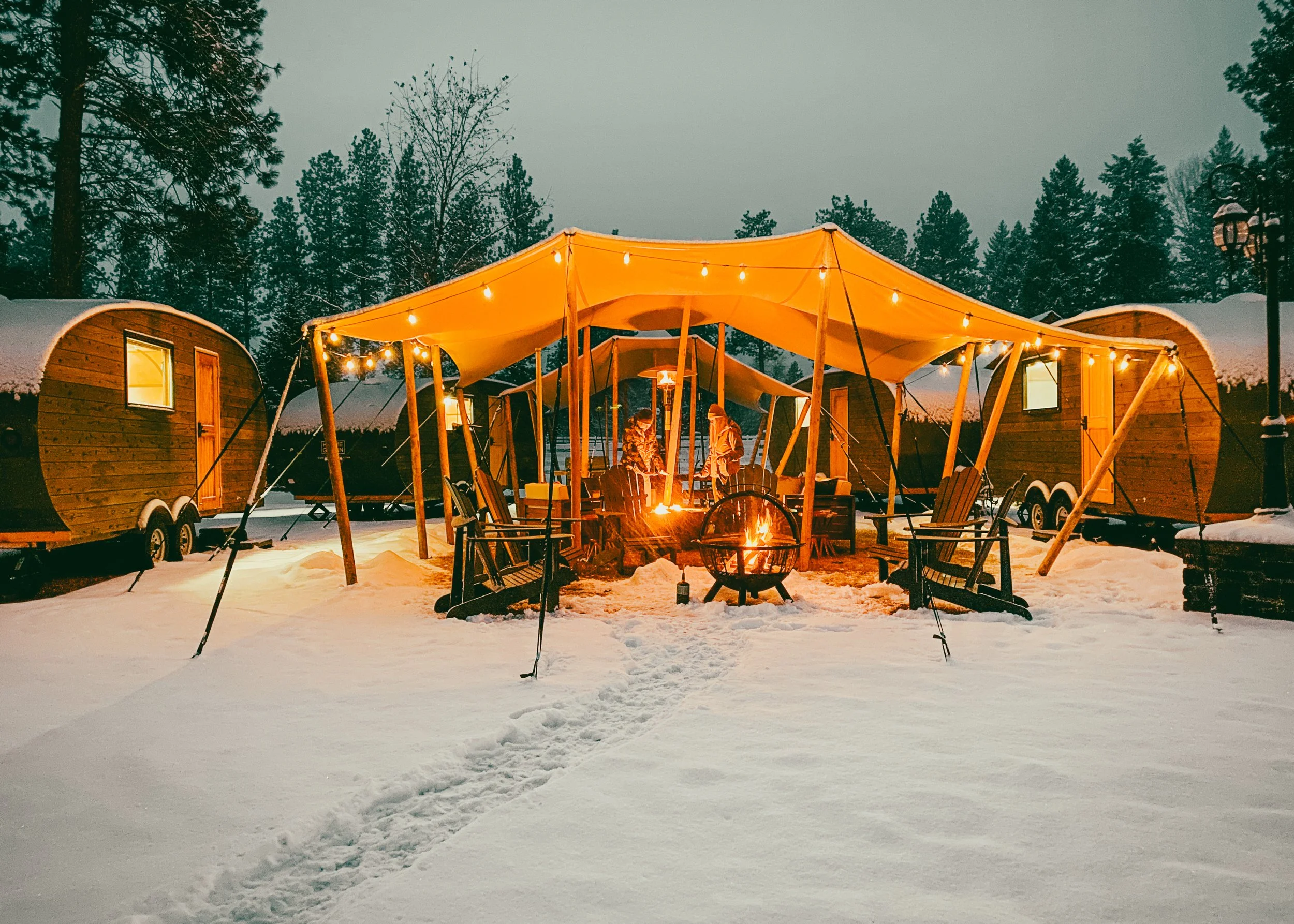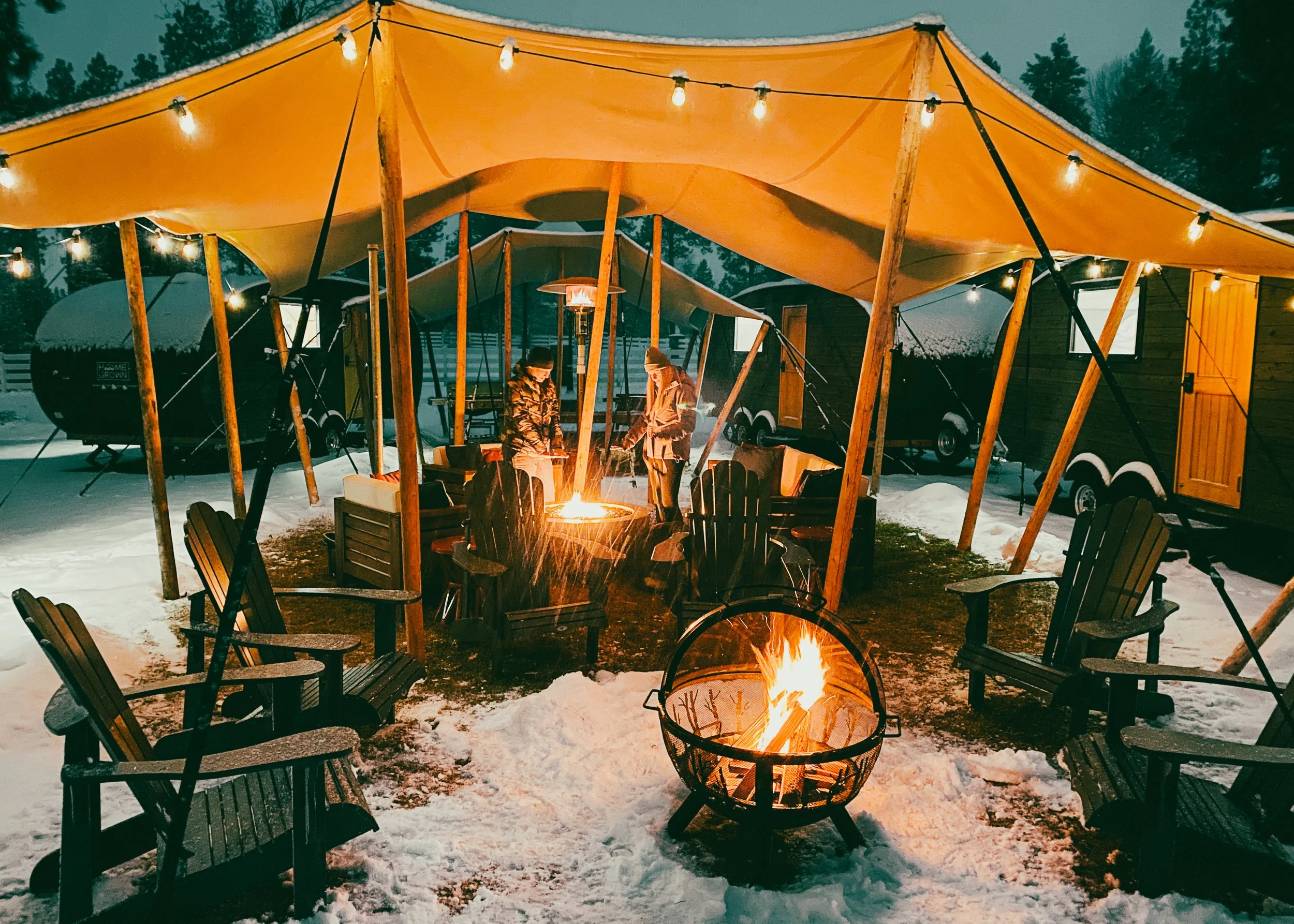 - 2 cabins with private safari-style tent and warm, ambient string lighting